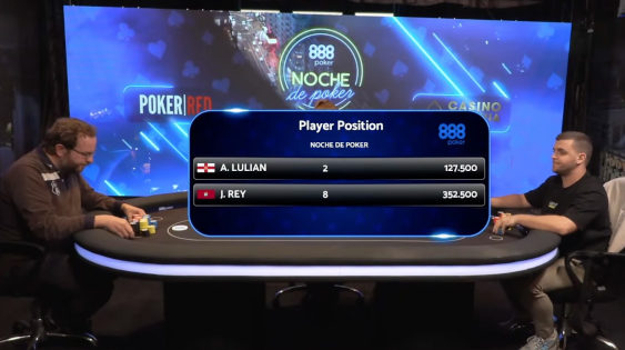 Pero la mano o cooler más llamativo de la noche fue cuando los dos protagonistas del heads up final, se encontraron aún en la mesa con ocho jugadores, estando Alex Iulian a punto de ser eliminado. En una mano en la que las cosas pintaban mal para Illuan, que tenía QJ mientras que Rey ya llevaba las dobles ligadas con J10 en un flop J-10-4 y turn 4. Pero el river sería una de las damas que faltaban por salir y dejaba con vida a Lulian, que volvería a verse las caras contra Rey en varias ocasiones más.